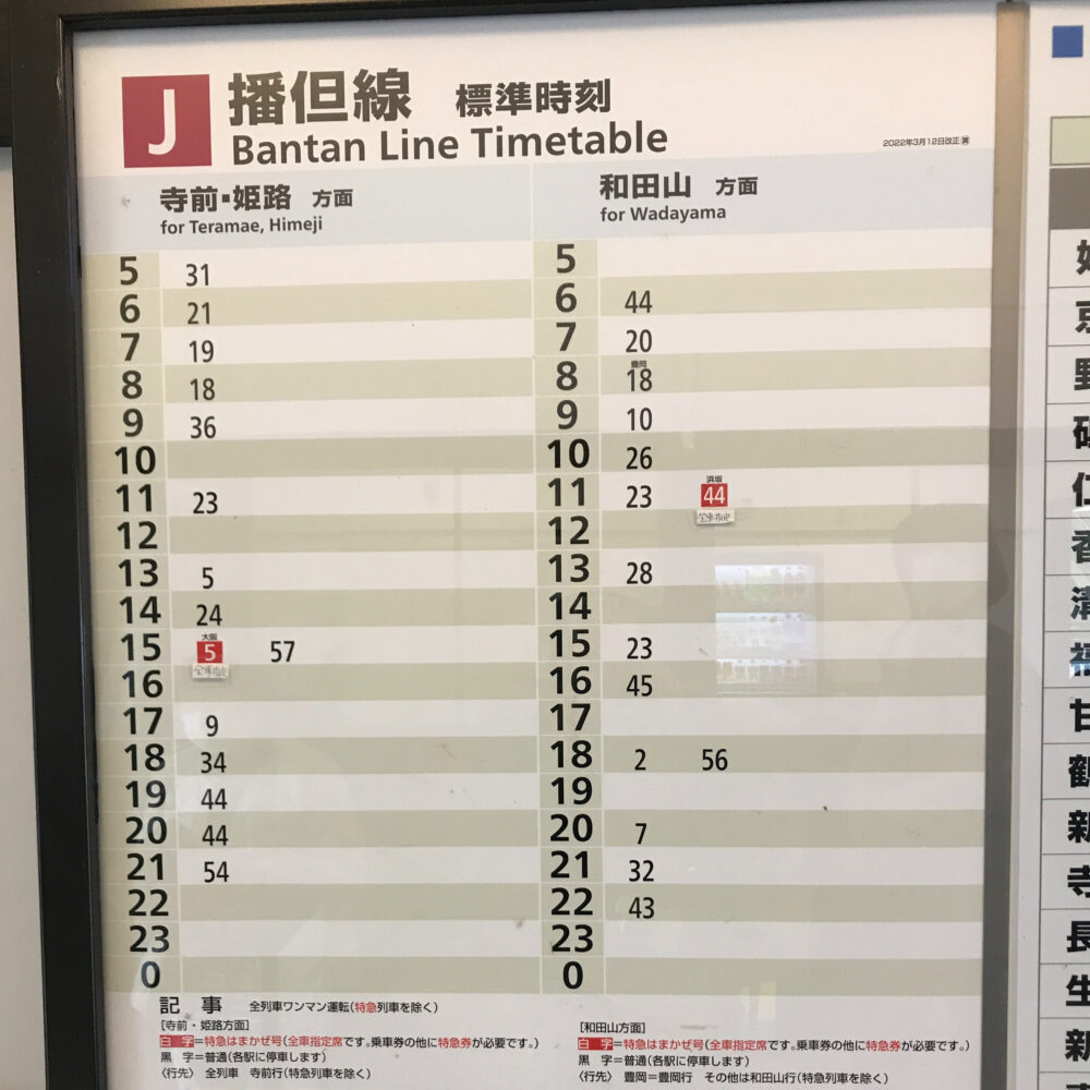 7:33 姫路→寺前→9:09 竹田(JR播但線)