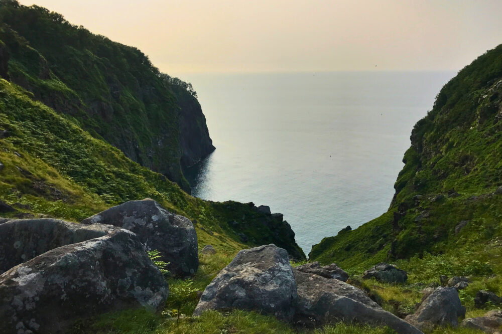 断崖絶壁の景色が霧の向こうまで続いています。